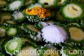 Directions For Karela Kaju (Bitter Gourd And Cashew)