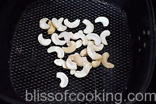 • Pre heat an air fryer, roast the cashew to golden and set aside.