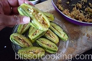 You may like to try our other similar recipes Paneer Stuffed Bhindi, Shahi Stuffed Gobhi, Besan Wali Bhindi and Baigan Kalonji.