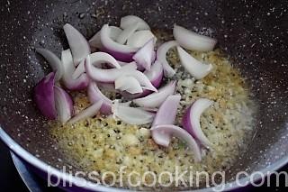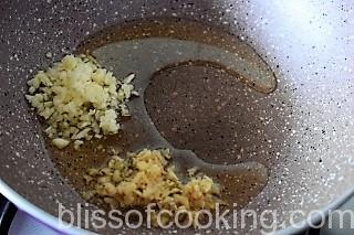 - Heat the wok/ pan; add oil, add the garlic, ginger and saute for a few seconds.
