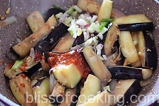 Note: Take care not to overcook the eggplants as they will be mushy. Add the sauce when the eggplant is half cooked.