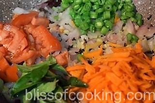 - Add the beans, carrot and saute for 2 minutes.