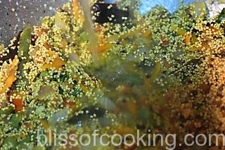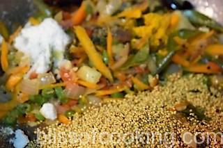 - Pour in the water, stir, and cover and cook till the water is absorbed.