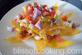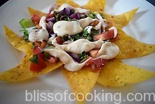 Loaded Nachos is made with homemade corn chips. Topped with beans, salsa, and cheese sauce this dish is a great starter. These layered Top Nachos are loved by all in my family and friends.