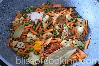 - Cover and cook till the vegetables are half-cooked.