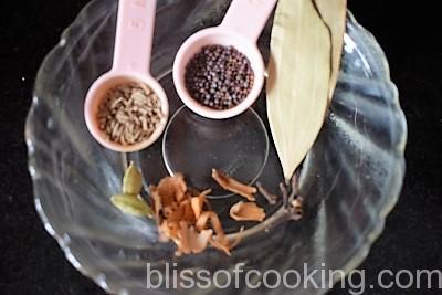 - In the same pan add mustard, cumin, bay leaves, cloves and cardamoms.