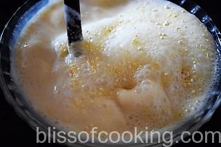 - Stir this batter for 5 minutes till the batter is light and fluffy.