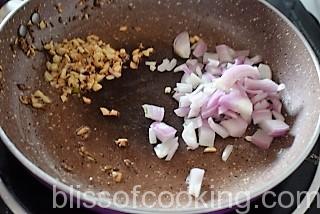 - Heat ghee in a small pan; add jeera, garlic, ginger and onion. Stir for 2 minutes.