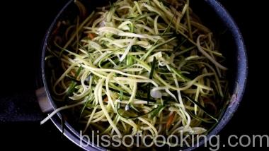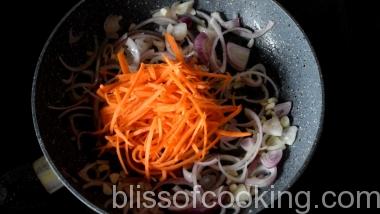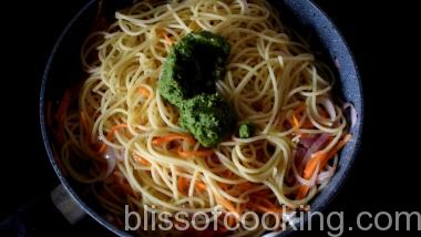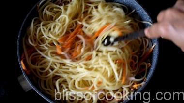 - Add carrot and spaghetti and saute for 1 minute.
