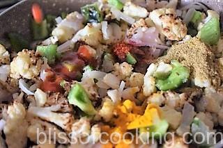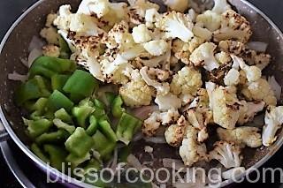 • Add capsicum, cauliflower and Stir for few minutes.