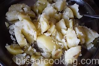 - Crush the aloo roughly and set aside.