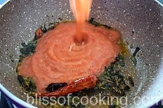 - Add tomato pure and saute till it thickens and oil starts to come out.