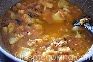 - Adjust the thickness of the gravy by adding more water if required and cook.