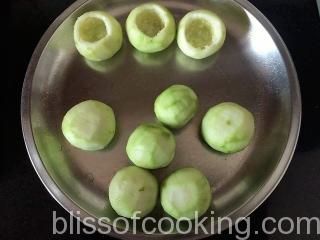 - Peel the tinda and scoop out the flesh from inside. Keep the flesh aside to be used for filling.