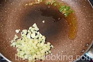 - Heat oil in a pan; add garlic, ginger, chilli and the scraped flesh and saute for 2 minutes.