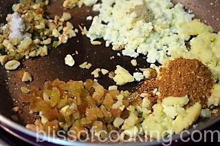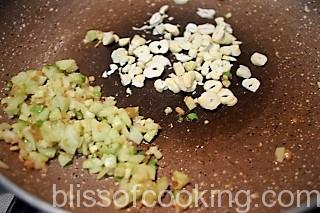 - Add the chopped cashew and saute for a minute.