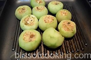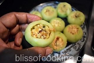 Shikampuri Grilled Tinda (Indian Squash/Round Melon) is a delicious bharwan tinda (stuffed tinda) dish. This is a versatile dish that can be served as starter or side dish. The stuffing is made of paneer, khoya and dry fruits thus making this dish rich and delicious.