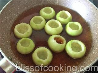 Shikampuri Grilled Tinda (Indian Squash/Round Melon) is a delicious bharwan tinda (stuffed tinda) dish. This is a versatile dish that can be served as starter or side dish. The stuffing is made of paneer, khoya and dry fruits thus making this dish rich and delicious.