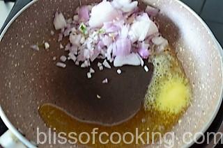 - Heat the oil and 1 tablespoon butter in a pan; add the onion and saute for 2 minutes.