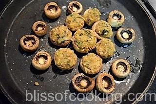 Stuffed Cheese Mushrooms are easy to make and are great starters for big gatherings or parties. These cheese garlicky mushrooms are delicious and hard to stop eating. Made with button mushrooms, fresh bread crumbs and cheese, this finger food never fails to impress. You can season the filling as per your taste. Pair it with our Fruit and Vegetable Salad with Honey Mustard Dressing.