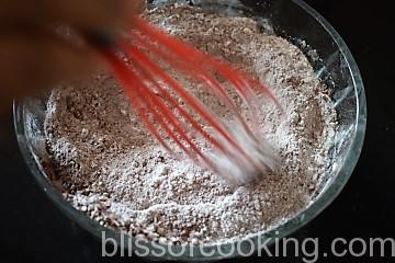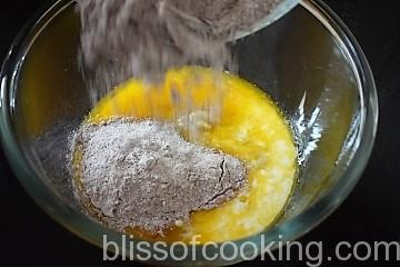 - Sieve maida, cocoa powder, baking powder and soda together and set aside.