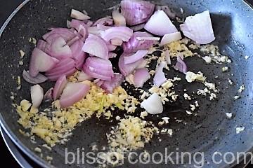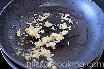- Heat oil in a pan; add garlic and saute till light golden.