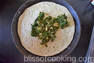 - On the pizza spread 2 to 3 tablespoon of the spinach evenly.