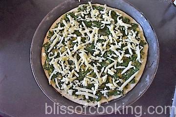 Note: Spinach topping can be made in advance and refrigerated. Keep it out for some time before using. Even the pizza base can be prepared and baked lightly one day ahead.