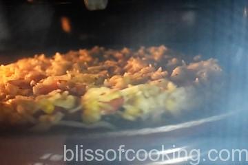 - Bake in a hot oven at 200 degrees till the base is crisp and golden and the cheese melts.