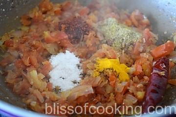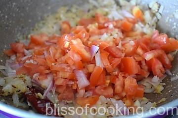 • Add the tomatoes and saute till mushy.
