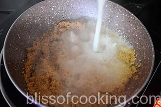 - Now pour in the hot water and milk, stir till no lumps are there.