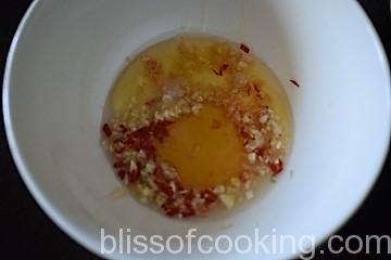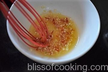• In a mixing bowl add all the ingredients for the dressing and whisk together until well combined.