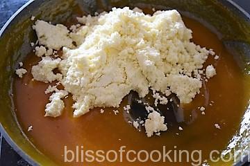 - Add in milk powder and stir continuously on medium heat till it starts to leave side.