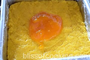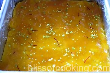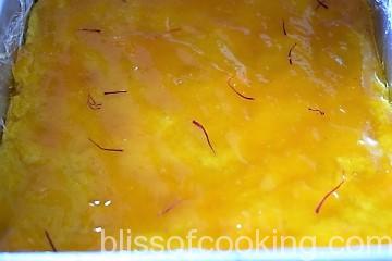 Glazed Mango Sandesh (Glazed Ricotta Cheese with Mango) is a mouth melting sweet. These refreshing and delicate square pieces are absolutely to die for. There is no way you can go wrong with this easy to prepare recipe. I have used mango glaze on top to add more flavor and a little drama.
