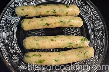 - Apply oil on both your hands, pinch lemon size dough and roll to form stick or fingers.