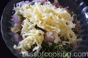 - In a bowl mix all the ingredients mentioned for the stuffing. Check the seasoning and adjust to your taste. Set aside.