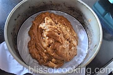 - Pour the batter into the prepared cake tin and bake at 180 deg C for 35 to 40 minutes or until a skewer inserted in the center comes out clean.