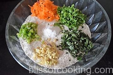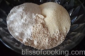 - In a bowl add oats, rawa (semolina), rice flour and mix.