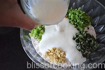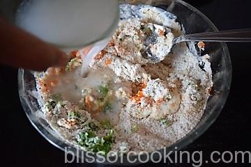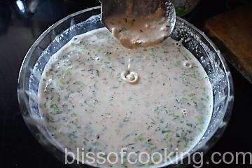 - Now add rest of the ingredients except onions and oil. Add water to make thin batter just like rava dosa. Let it rest for 15 minutes.
