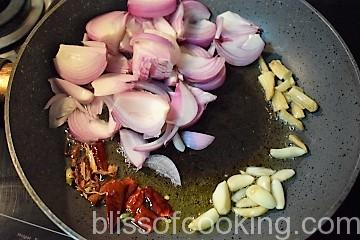 • Add the onions and saute till translucent.