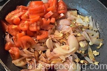 • Mix tomatoes and saute till tomatoes are mushy.