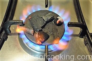 • Heat the coal on the stove.