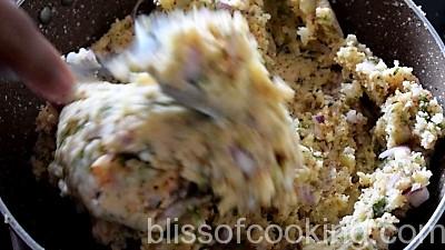 - Add rest of the ingredients except cheese to the suji and mix well to form dough.