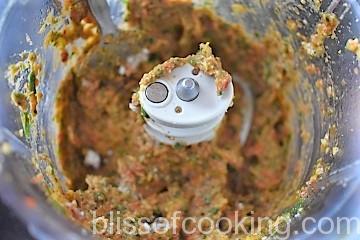 - Grind all the ingredients for marinade together in a blender to a paste. Transfer in a bowl.