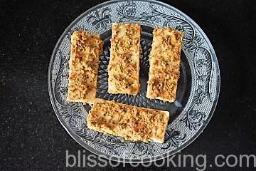 - Coat all the slices of tofu generously, cover and refrigerate to marinate for 30 to 40 minutes.