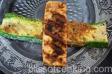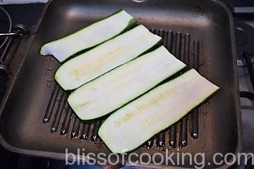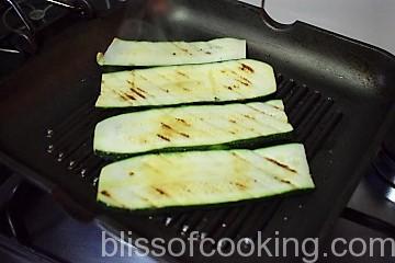 - Grill all the zucchini slices on each side till grill marks appear. Season with salt and pepper.