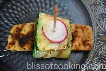 Grilled Zucchini and Tofu Roll Ups are light, flavorful and perfect as a starter. This vegan appetizer is truly delicious and healthy. Made with strips of grilled zucchini and stuffed with marinated grilled tofu. The marinade made with basil, roasted peanuts reminds you of Thai flavors.
