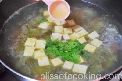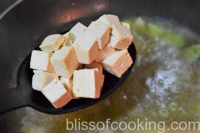 - Now add tofu, salt, reduce heat and simmer until squash are crisp-tender, about 3 to 4 minutes.