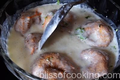 - Now squeeze the Vada’s lightly so that excess water comes out and the vada does not lose its shape. Add to the dahi.