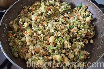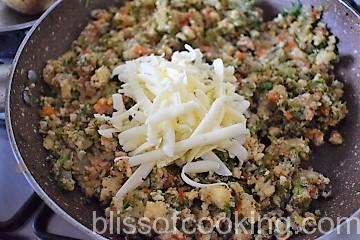 • Switch off the heat; add coriander, grated cheese and mix.